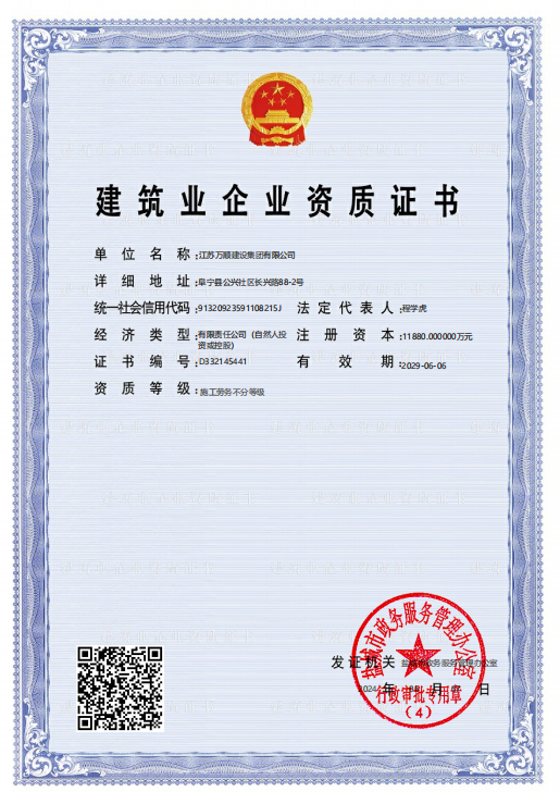 江蘇萬順建設集團于2012年2月經鹽城市阜寧縣工商行政管理局批準設立,目前已形成建筑施工總承包、建材銷售等綜合性、多元化企業,也是一家擁有現代經營管理模式、追求可持續發展的企業。